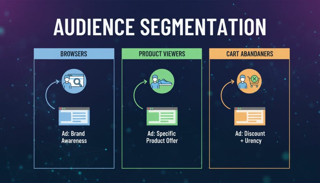 Segment your audiences based on behavior. At minimum, create separate retargeting campaigns for site visitors with no product views, product viewers, cart abandoners, and past customers. Tailor your messages to each group. Cart abandoners might need a discount or free shipping offer, while casual browsers need more education about what you actually sell and why it matters.