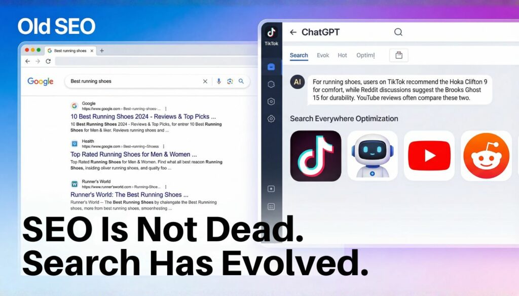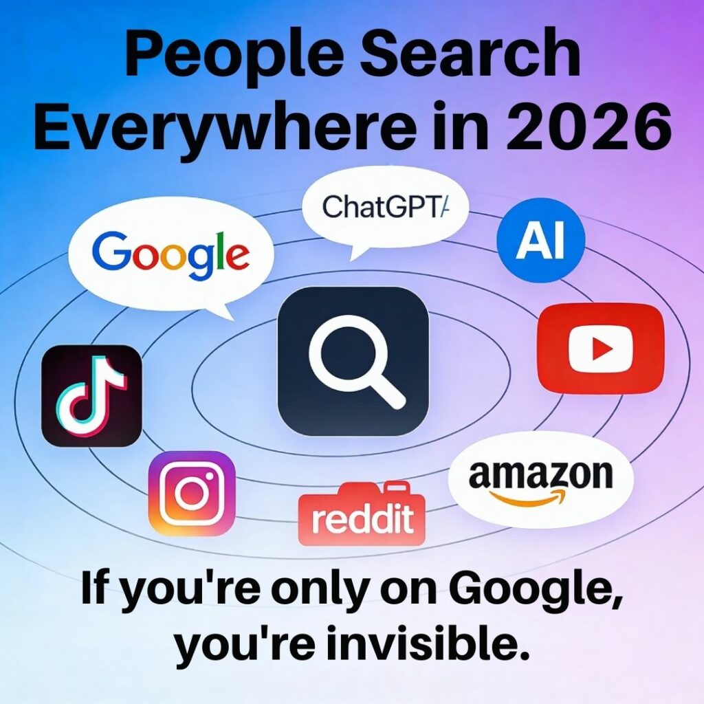 It means optimizing your presence not just for Google, but for search engines, social platforms, video platforms, marketplaces, and AI-powered tools.