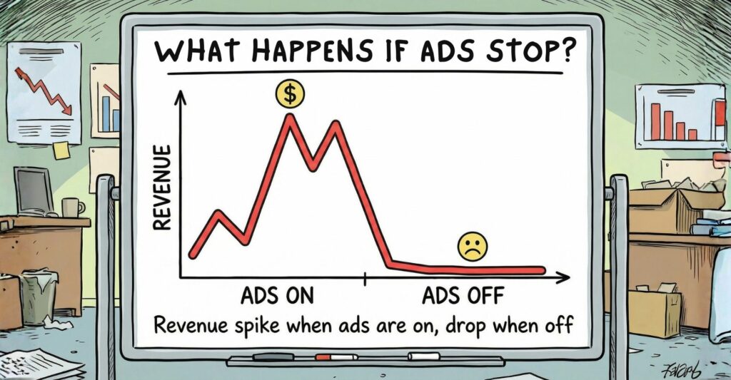 But somewhere along the way, the relationship flips. Instead of ads supporting growth, they become the only source of it. You’re no longer using paid traffic to accelerate, you’re using it to survive.